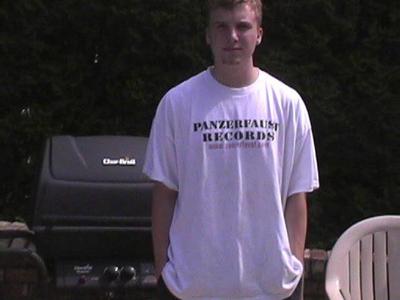 Anybody else recognize the shirt he’s wearing? That’s right it’s a t-shirt from now-defunct white supremacist record label Panzerfaust Records. And if he still does have net access which it appears he does and he still has links to white supremacist sites and the like then it seems like he hasn’t learned his lesson.