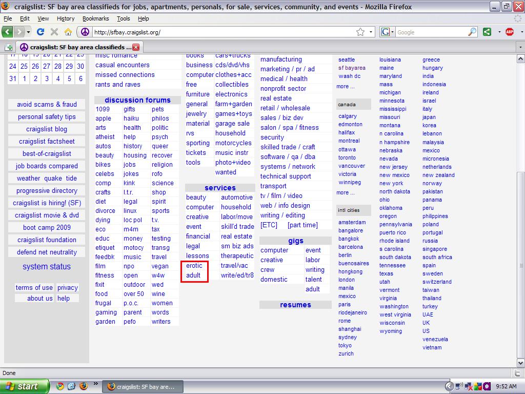It seems that craigslist is changing the erotic services section into the ‘adult services’ section.