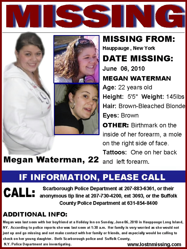 I originally posted about Megan Waterman here. She’s the woman and mother from Maine who went missing while working as a craigslist escort on Long Island.