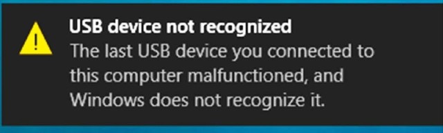 So a few weeks ago, I plug my vape pen, the Stick Prince in case you were wondering, into my laptop through the micro-USB cable. I’ve done this thousands of times before without issue. All of a sudden I get the following error message on Windows 10.