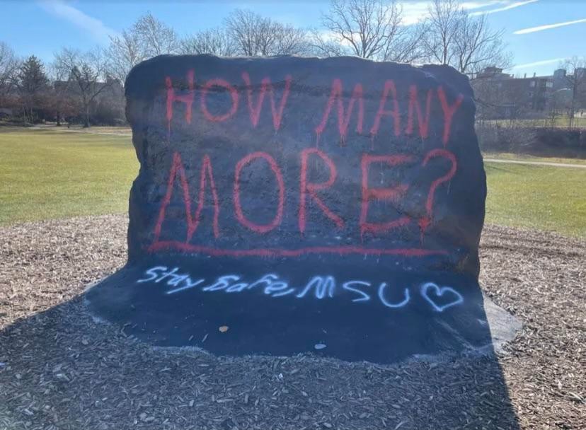 Like many schools, MSU has a rock where students are allowed to spray paint messages. As you can see, ‘How many more?’ is more than a fair question. Apparently, the resident gun nerds at MSU didn’t care too kindly for this message. They painted over the rock with a message of, “Allow us to defend ourselves & carry on campus”. College campuses don’t need a bunch of idiot frat boys having a shootout on campus because one of them mistakenly thought the other was an active shooter. Again, most gun nerds are just waiting for an excuse to shoot someone. As I am fond of saying, the answer to gun violence isn’t more guns, as that’s like trying to cure cancer with more cancer.