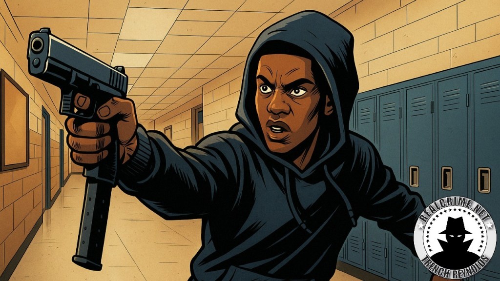 While police have yet to announce a formal motive, there are signs this shooting may be tied to gang-related violence. And to be clear, this isn’t about the race of the suspect. It’s about the weapon. The image circulating from school surveillance shows Tracy Haynes Jr. wielding what appears to be a 9mm semiautomatic handgun fitted with an extended magazine.