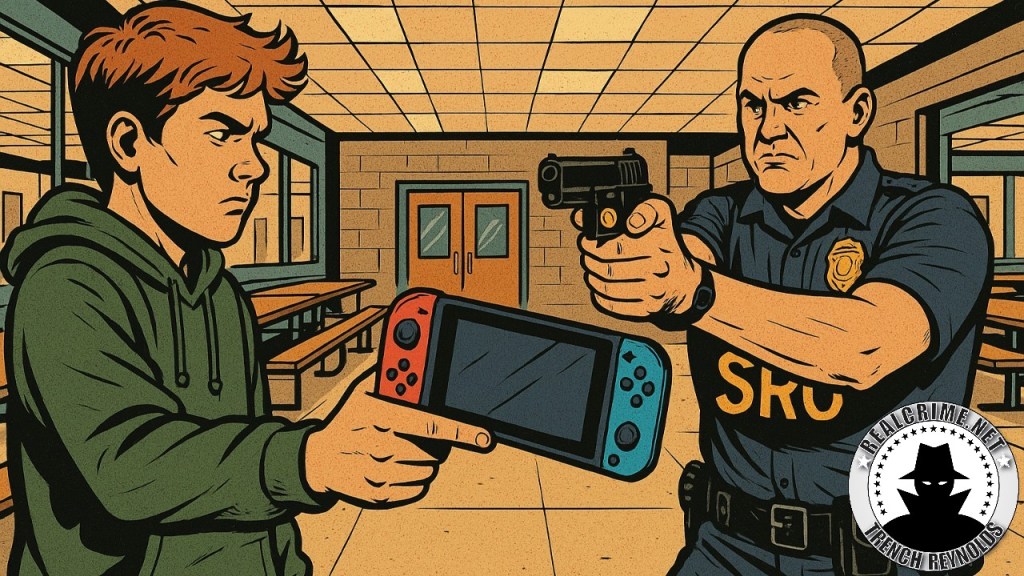 According to authorities, a staff member told the officer that a student had reportedly claimed to be carrying a weapon. The officer entered the cafeteria, identified the student based on that description, and ordered him to take his hands out of his pockets. When the student reportedly said he had “a switch,” the officer drew his service weapon and ordered him to the ground. The student complied, was detained, and after a search, no weapon was found.
